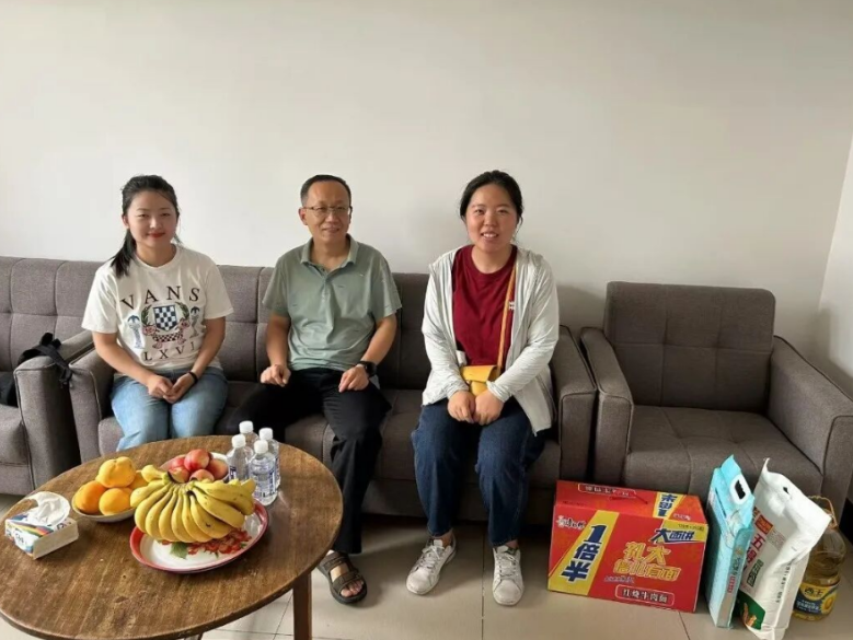 两位老师与学生及家长围坐交流,从生活日常聊到学业规划,细致了解学生的成长环境与家庭情况。每一句关切询问,每一次认真倾听,都拉近了家校之间的距离,让学生和家长感受到了学校的关怀与温暖。此外,老师们代表学院向困难家庭送上米面粮油等生活物资,让这份关怀更具有温度。