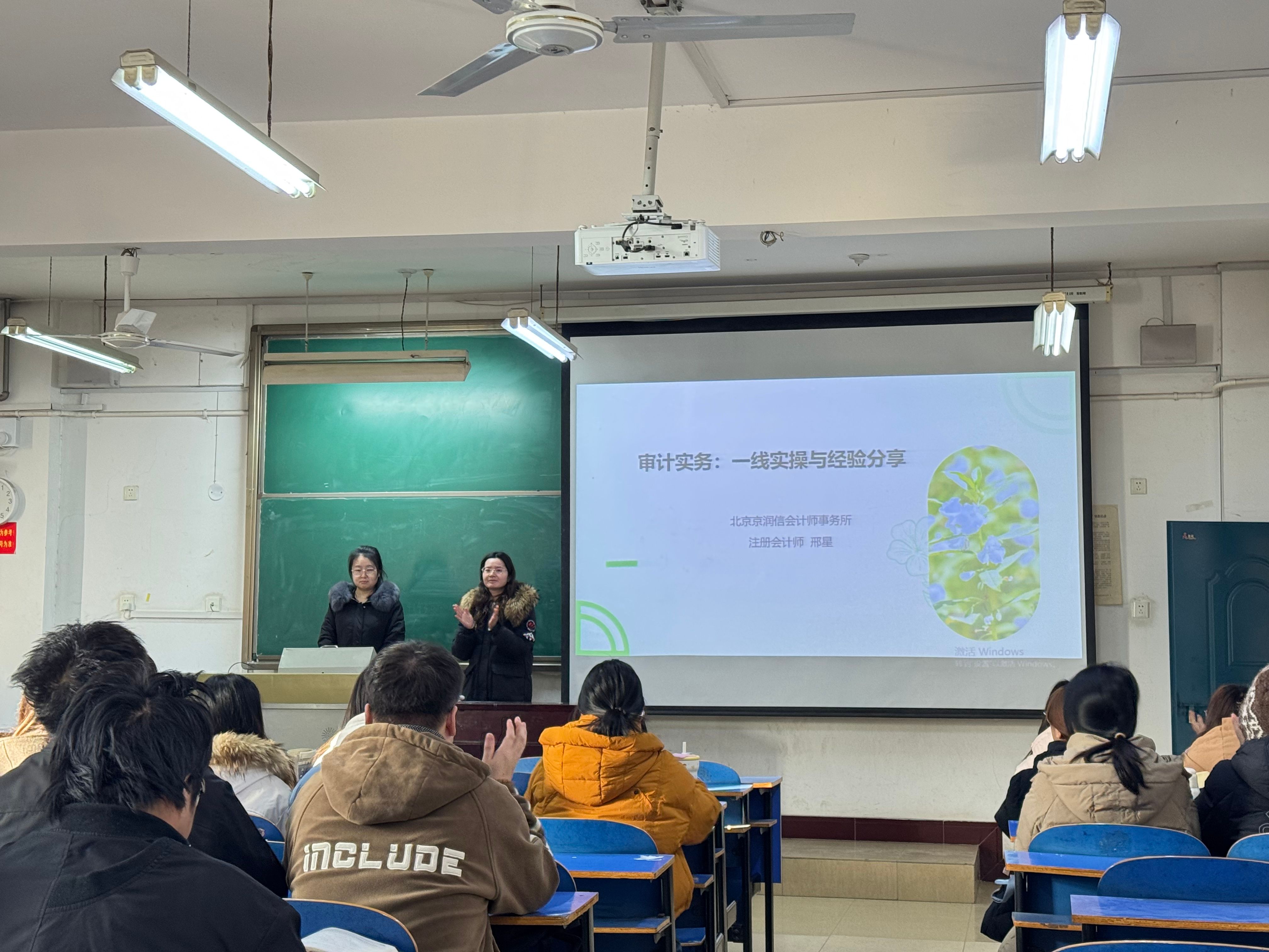 2025年12月24日,北京京润信会计师事务所注册会计师邢星应邀到访安阳工学院会计学院,分别对审计学专业的《注册会计师审计》课程、财务管理专业的《会计信息系统》课程进行授课,会计学院师生代表齐聚参与学习。